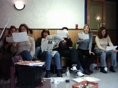 In unserem ersten Konzert 2003 haben wir so manches ausprobiert:z.B. wie wir mit Bandbegleitung klingen (danke an RTM aus Dortmund!) oder wie unser Publikum auf eine verjazzte Version von "Der Mond ist aufgegangen" reagiert?! Sehr interessant! ;o)